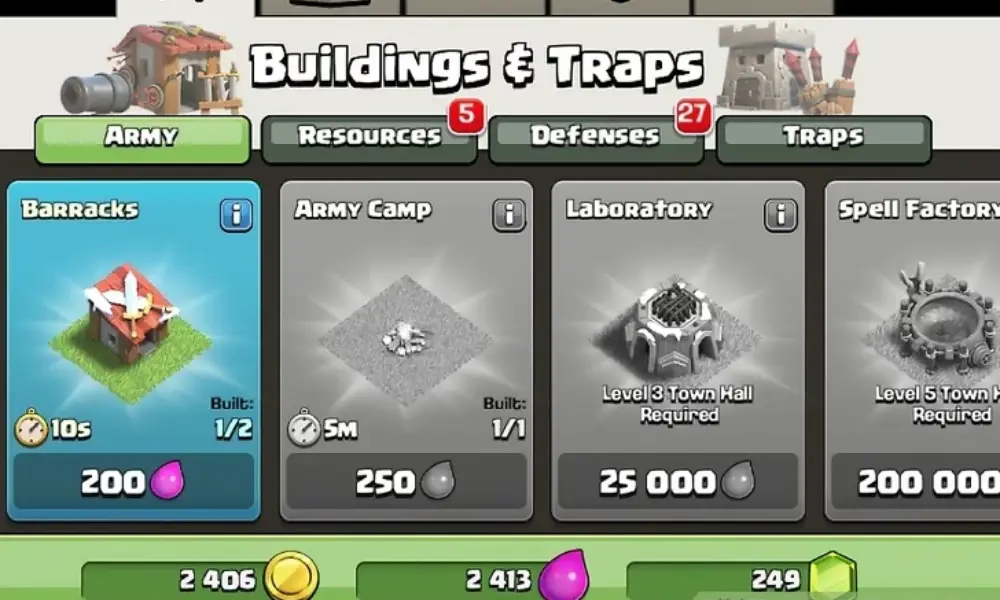 نکته کلیدی: بازی ممکن است به شما پیشنهاد دهد که با استفاده از جواهرات (Gems) روند ساخت و ارتقا را سریعتر کنید. اما بهترین استراتژی، ذخیره کردن جواهرات برای خرید کلبههای سازنده بیشتر است. داشتن سازندههای بیشتر به شما امکان میدهد چندین ساختمان را به طور همزمان ارتقا دهید و سرعت پیشرفت خود را به شکل چشمگیری افزایش دهید.