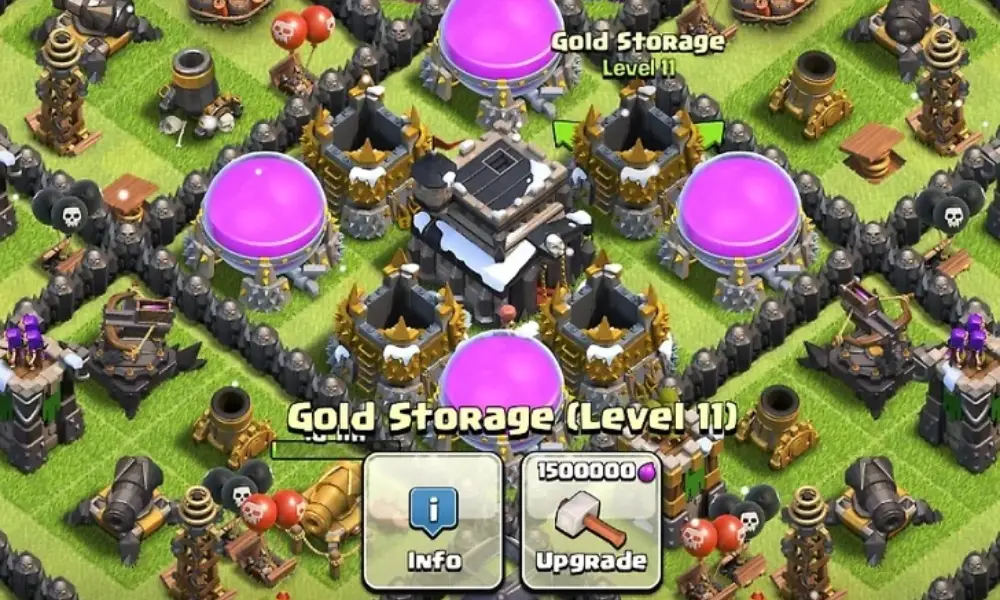 - محافظت از ساختمانهای کلیدی: مهمترین ساختمان پایگاه، تالار شهر (Town Hall) است که نشاندهنده سطح پیشرفت شما در بازی محسوب میشود. توصیه میشود تالار شهر را در مرکز پایگاه قرار دهید و با دیوارها و ساختمانهای دفاعی دور آن را محصور کنید. همچنین مخازن منابع باید در جایگاههای محافظت شده قرار بگیرند تا دسترسی دشمن به منابع شما سختتر شود.