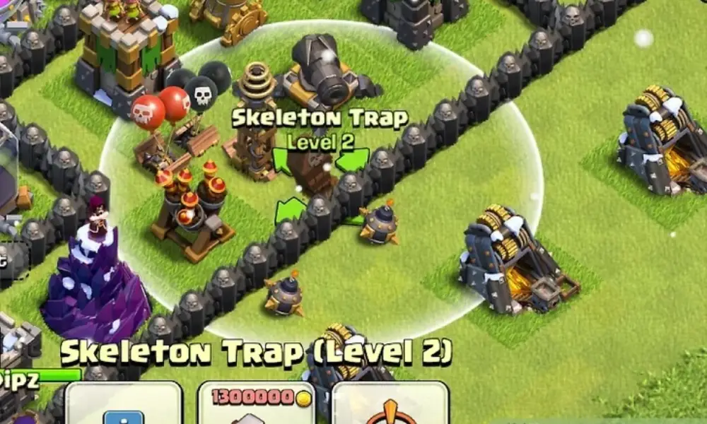 تلهها (Traps) شامل بمبهای غول پیکر (Giant Bombs)، تلههای فنری (Spring Traps) و بمبهای هوایی (Air Bombs) هستند که میتوانند در مسیرهای حرکت نیروهای دشمن مانند ویچ (Witch)، دراگون (Dragon) و بالن (Balloon) آنها را دچار آسیب شدید کنند. قرار دادن تلهها در مکانهای نامنتظره و اطراف ساختمانهای مهم همچون انبار طلا (Gold Storage) و انبار اکسیر (Elixir Storage) موجب میشود نیروهای مهاجم با خسارتهای سنگینی مواجه شوند.