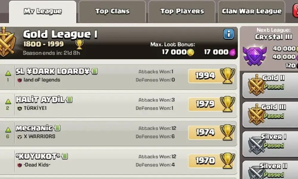 - لیگهای جنگ قبیلهای: با شرکت در این رقابتهای ماهانه، مدالهایی کسب میکنید که امکان خرید آیتمهای ویژه را فراهم میکند.
