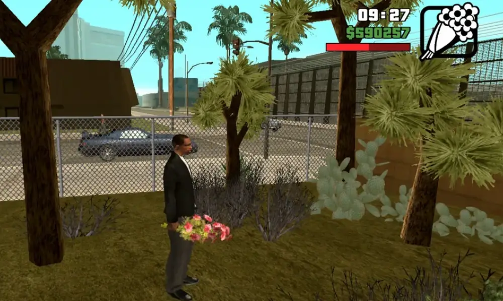 گلها به عنوان سلاح نزدیک و هدیه در دسته Gifts قرار دارند. بازیکن میتواند آنها را به پارتنرهایش هدیه دهد یا برای طنز به دشمنان ضربه بزند، گرچه آسیب کمی وارد میکنند اما امکان ضربه زدن بیشتر را فراهم میآورند. در بازی جی تی ای سن اندرس گلها را میتوانید در مکانهای زیر بیابید: