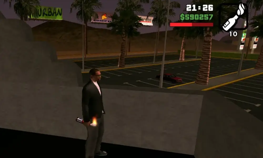 - به مرکز خرید Creek در Las Venturas بروید و کوکتل مولوتوف را روی پشت بام پیدا کنید.